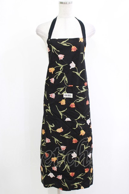 PINK HOUSE / チューリッププリントエプロン Free ブラック H-26-04-21-035-LO-OP-NS-ZH