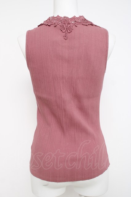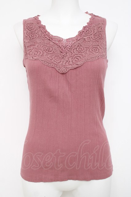 axes femme / 薔薇レース使いリブタンク M ピンク Y-26-04-21-008-AX-TO-SZ-ZY