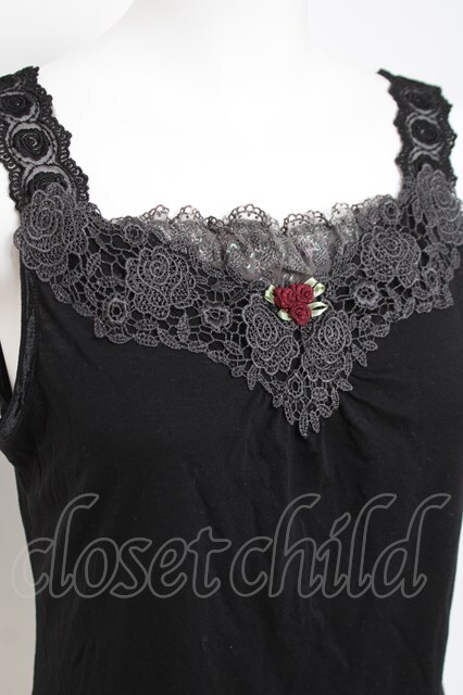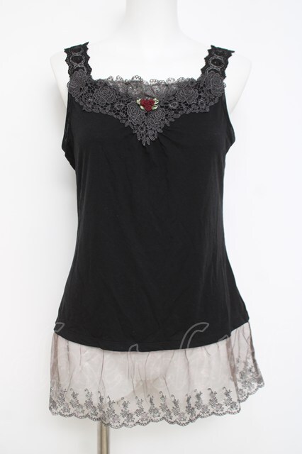 axes femme / 花柄チュールレース使いタンク M 黒 Y-26-04-21-012-AX-TO-SZ-ZY