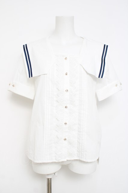 axes femme / マリン風セーラーカラーブラウス F 白 Y-26-04-21-016-AX-BL-SZ-ZY [2100070000068956-Y-26-04-21-016-AX-BL-SZ-ZY]