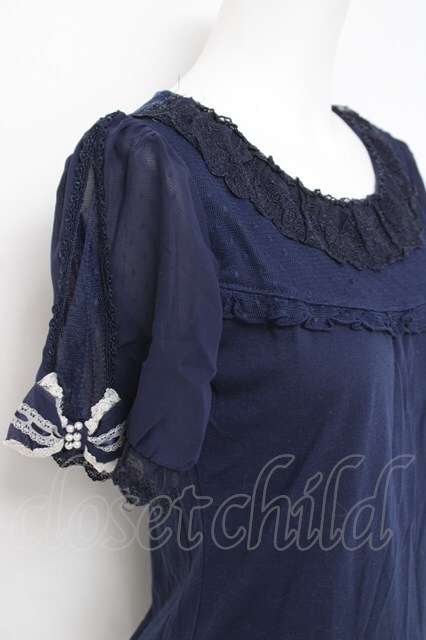 axes femme / 袖口リボンインナープルオーバー M 紺 Y-26-04-21-061-AX-TO-SZ-ZY