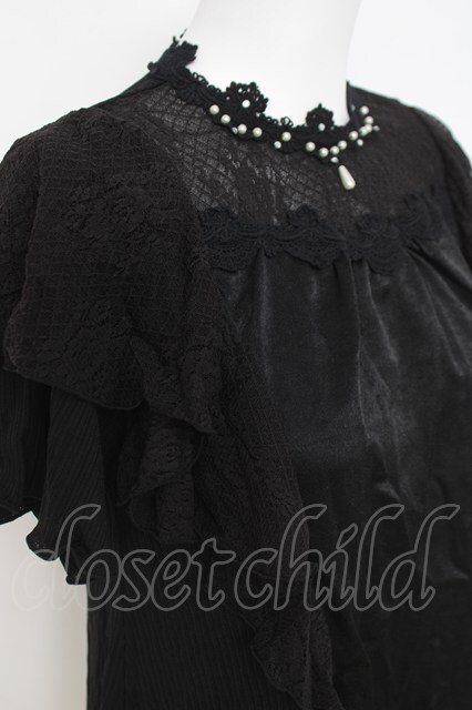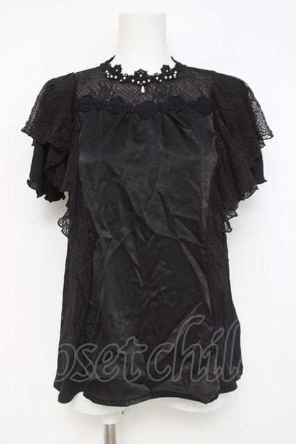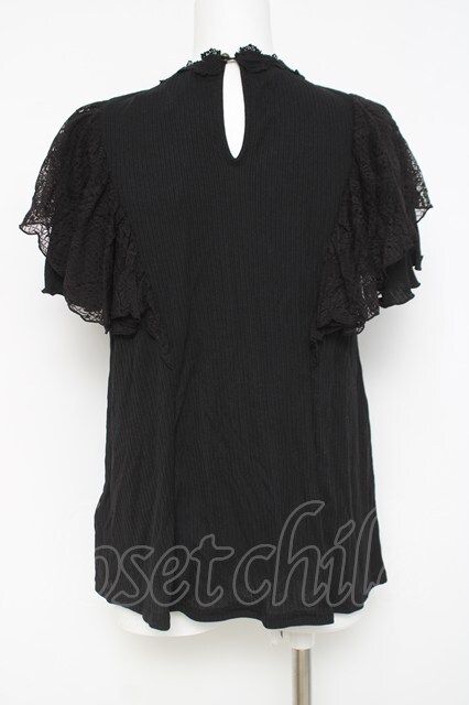 axes femme / レースラッフルテレコトップス 黒 Y-26-04-21-067-AX-TO-SZ-ZY