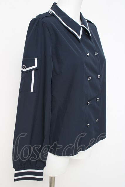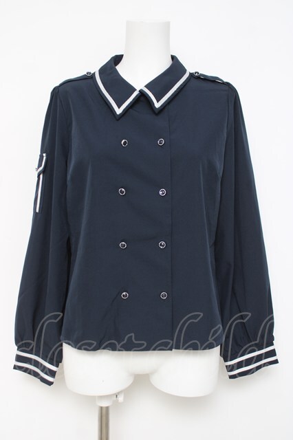 axes femme / ダブルボタンブラウス 紺 Y-26-04-21-084-AX-BL-SZ-ZY