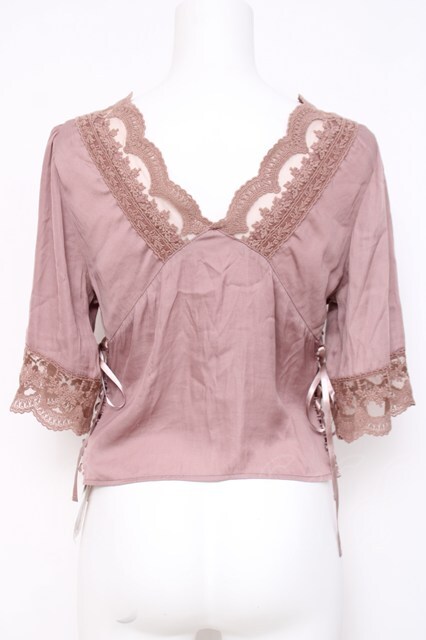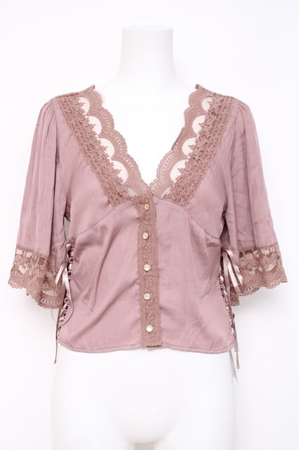 axes femme / ヴィンテージ風サテンブラウス ピンク Y-26-04-21-087-AX-BL-SZ-ZY