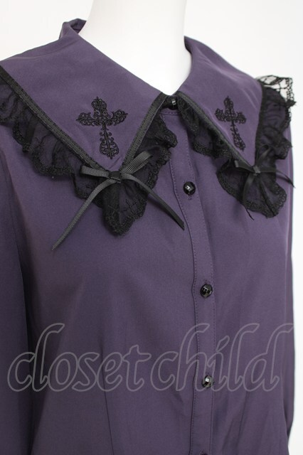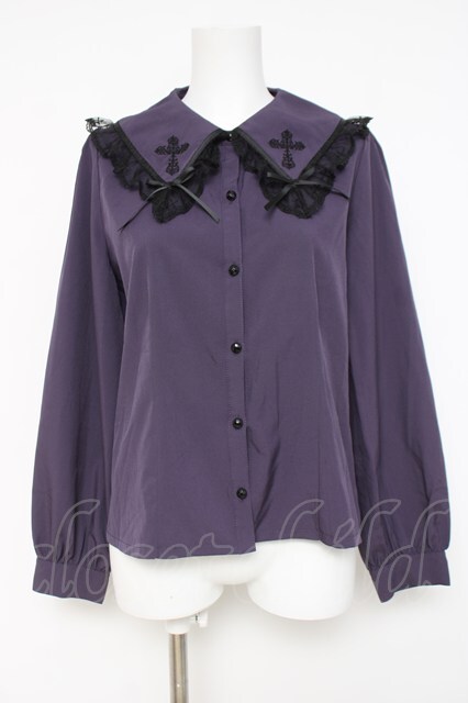 NIBBLE POISON / クロス刺繍ビッグ襟ブラウス パープル Y-26-04-21-091-PU-BL-SZ-ZY