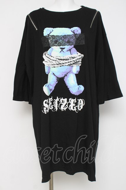 LISTEN FLAVOR / 囚われのベア肩ジップBIGカットソー 黒 Y-26-04-21-099-PU-TO-SZ-ZY [2100070000068669-Y-26-04-21-099-PU-TO-SZ-ZY]