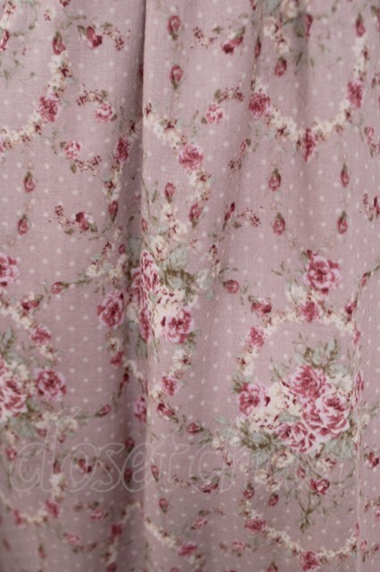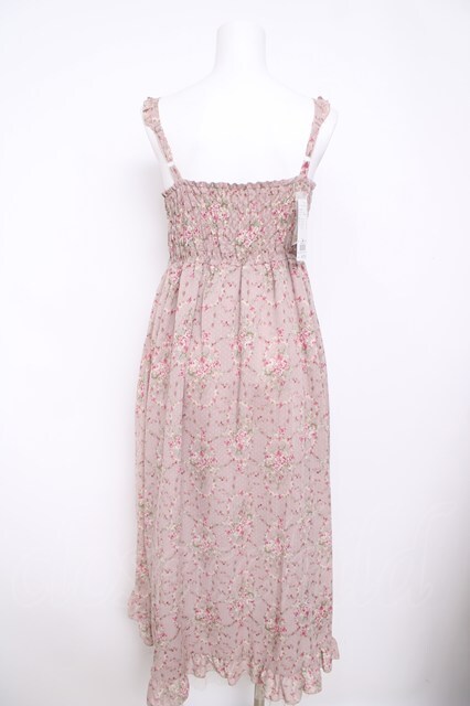 axes femme / スリット入りバラ柄ロングワンピース M 淡ピンク Y-26-04-21-116-AX-OP-SZ-ZY