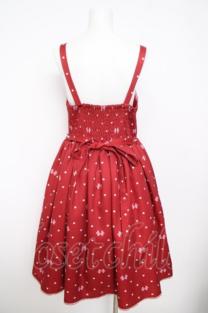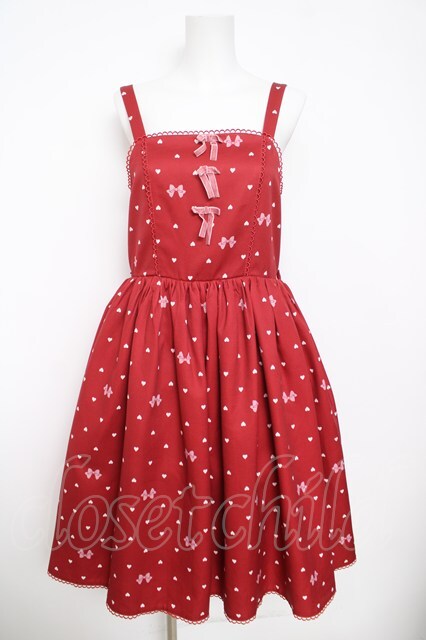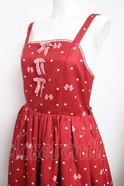 axes femme kawaii / ハートドット柄ジャンスカ M 赤 Y-26-04-21-127-AX-OP-SZ-ZY
