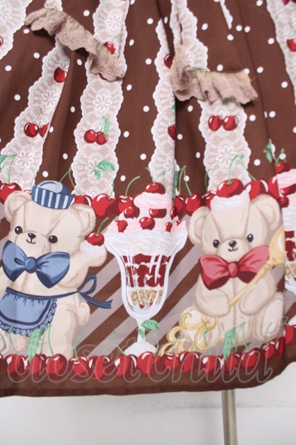 axes femme kawaii / クマパフェ総柄ジャンスカ 茶 Y-26-04-21-131-AX-OP-SZ-ZY