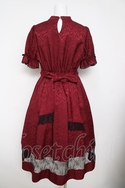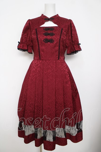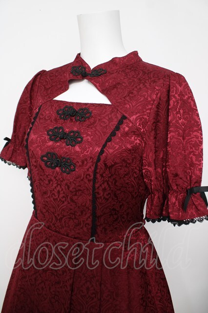 axes femme kawaii / チャイナ釦ジャガードワンピ M ワイン Y-26-04-21-149-AX-OP-SZ-ZY