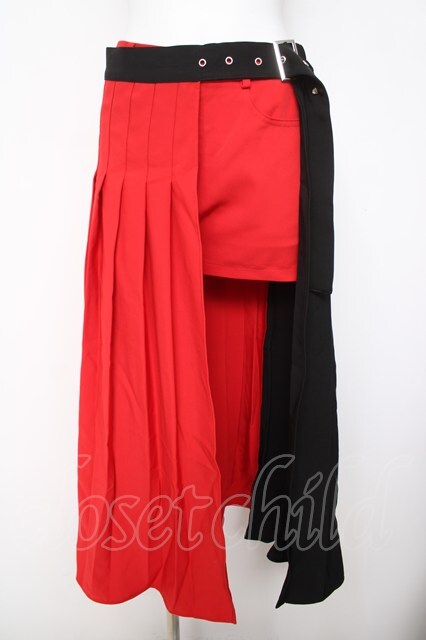 LISTEN FLAVOR / プリーツオーバースカート付きショートパンツ 赤 Y-26-04-21-165-PU-PA-SZ-ZY