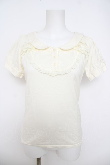 Emily Temple cute / ドットチュール切り替え襟付きカットソー M オフホワイト Y-26-04-22-057-ET-TO-SZ-ZY [2100070000064546-Y-26-04-22-057-ET-TO-SZ-ZY]