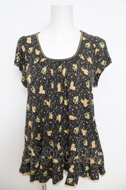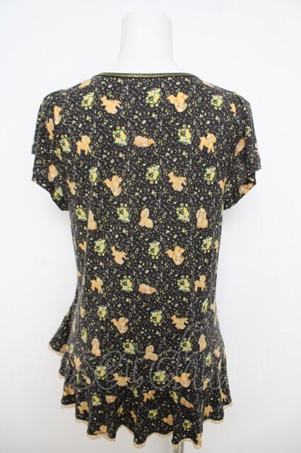 franche lippee black / こいぬ柄フリルトップス M 黒 Y-26-04-22-073-LO-TO-SZ-ZY