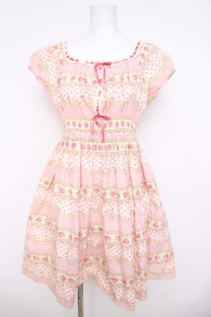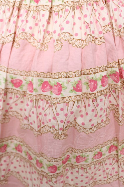 Emily Temple cute / フリルドット苺ワンピース ピンク Y-26-04-22-104-ET-OP-SZ-ZY