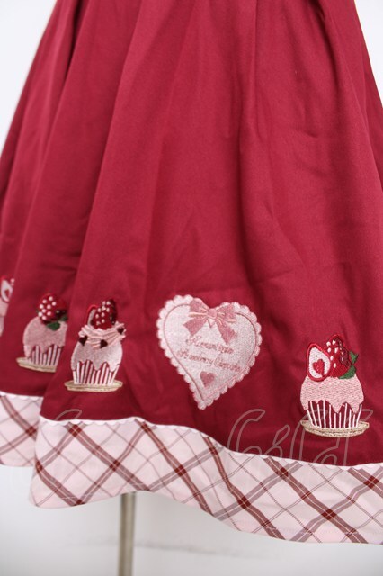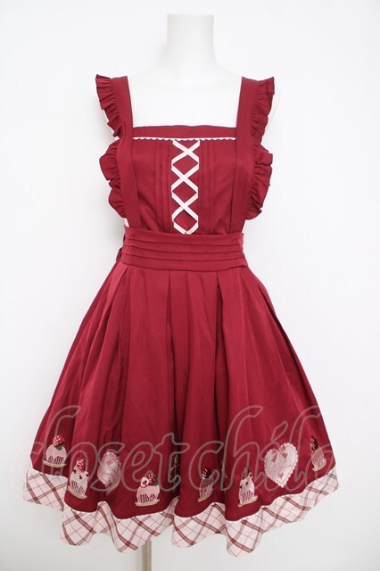 Amavel / いちごのカップケーキエプロンジャンパースカート F ワイン Y-26-04-22-112-CA-SK-SZ-ZY