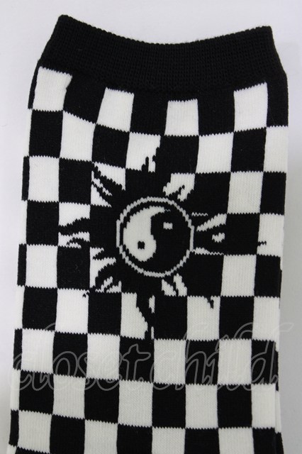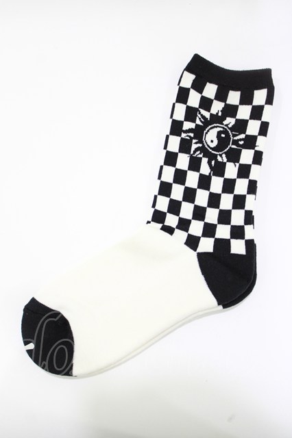 Candy Stripper / CHECKER SOCKS ブラック×オフ H-26-04-21-1005-PU-ZA-KB-ZH