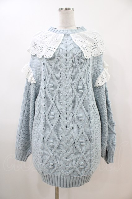 Candy Stripper / LACE COLLAR CABLE KNITワンピース サックス H-26-04-20-1039-PU-OP-KB-ZH [2100030000082703-H-26-04-20-1039-PU-OP-KB-ZH]