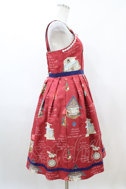 Emily Temple cute / Tick Tock Clockノースリーブワンピース レッド H-26-04-20-1032-ET-OP-KB-ZH