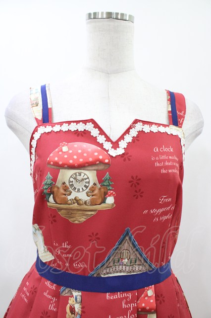 Emily Temple cute / Tick Tock Clockノースリーブワンピース レッド H-26-04-20-1032-ET-OP-KB-ZH [2100030000039230-H-26-04-20-1032-ET-OP-KB-ZH]