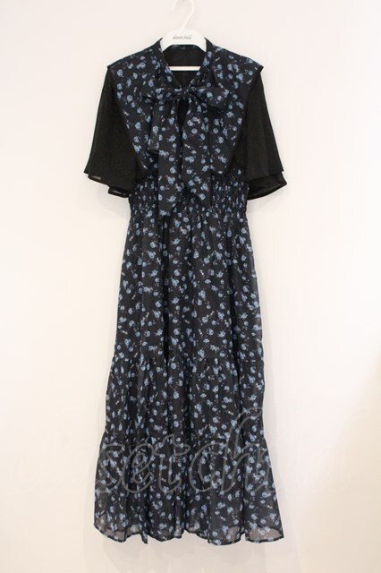 axes femme / 小花柄ブラウス×ワンピースセット F クロ×ブルー O-26-04-16-007-AX-OP-OW-OS [2100080000080072-O-26-04-16-007-AX-OP-OW-OS]