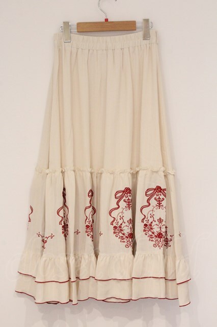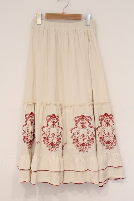 axes femme / リボンXブーケ刺繍スカート F クリーム O-26-04-16-017-AX-SK-OW-OS