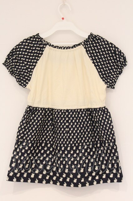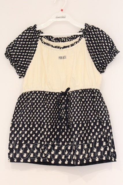 PINK HOUSE / うさぎ柄パフチュニック ネイビー×オフ O-26-04-16-069-LO-TO-IG-OS