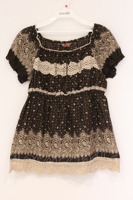 PINK HOUSE / レースプリントプルブラウス ブラウン O-26-04-16-058-LO-BL-IG-OS [2110060000000630-O-26-04-16-058-LO-BL-IG-OS]