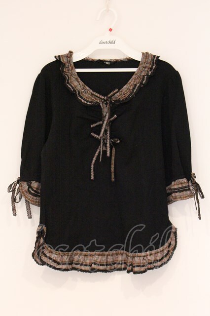 PINK HOUSE / ピコフリルカラーカットソー L クロ O-26-04-16-071-LO-TO-IG-OS [2110060000000567-O-26-04-16-071-LO-TO-IG-OS]