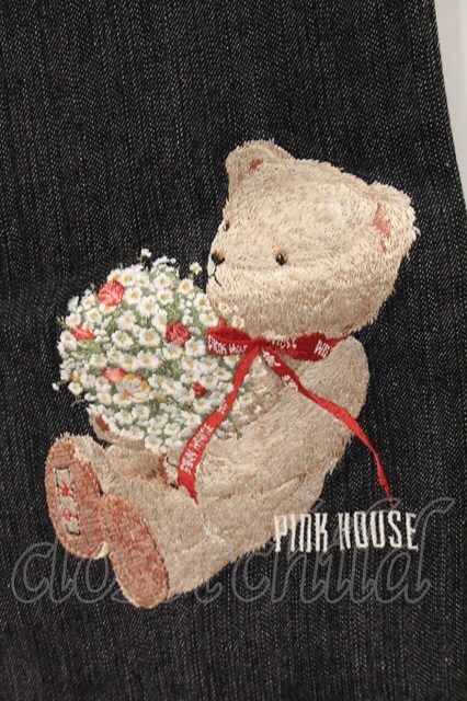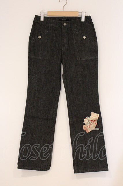 PINK HOUSE / ブーケテディ刺繍デニムパンツ L クロ O-26-04-16-039-LO-PA-IG-OS