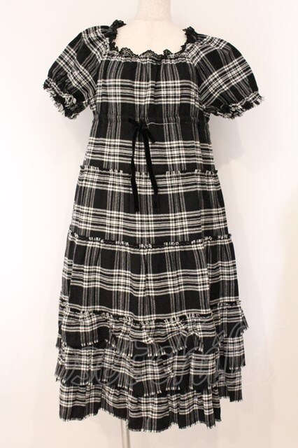 PINK HOUSE / タータンチェックパフワンピース クロ O-26-04-16-099-LO-OP-IG-OS