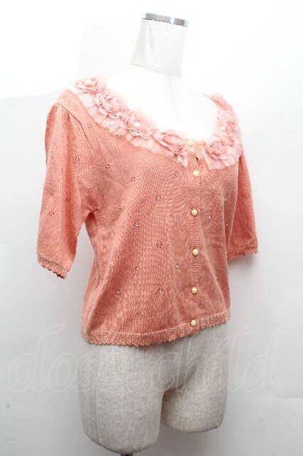 axes femme / 立体お花付カーディガン S-26-04-16-020-AX-BL-AS-ZS