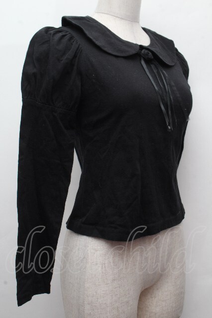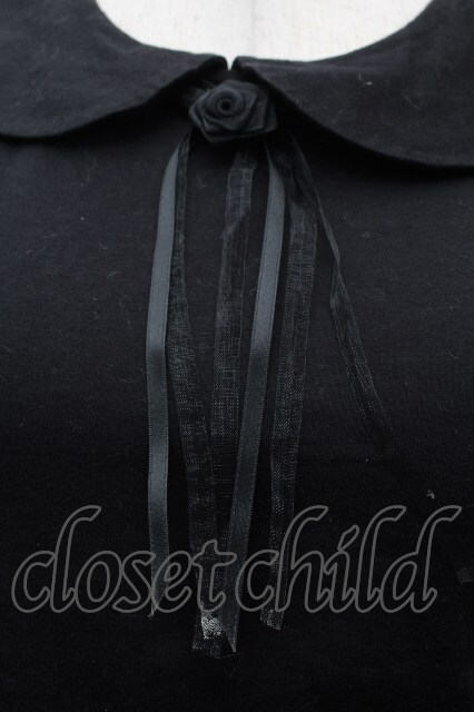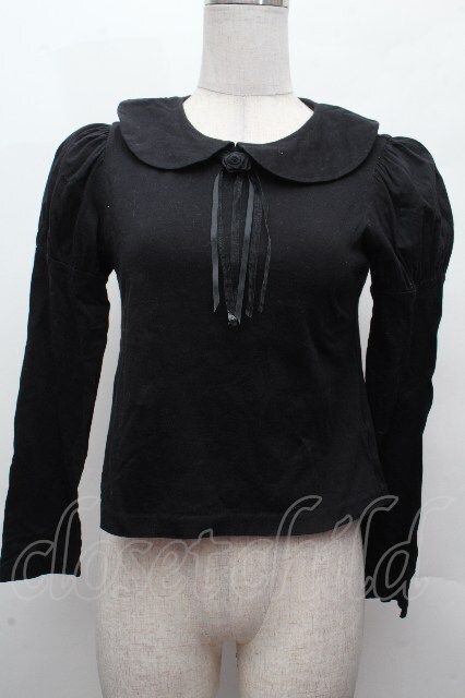 Moi-meme-Moitie / ローズブローチ付き丸襟カットソー 黒 S-26-04-16-036-MO-TO-HR-ZS
