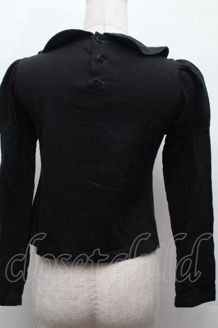Moi-meme-Moitie / ローズブローチ付き丸襟カットソー 黒 S-26-04-16-036-MO-TO-HR-ZS [2100020000023002-S-26-04-16-036-MO-TO-HR-ZS]