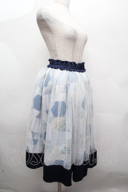 axes femme / パッチワーク柄スカート/ミュルーズ染織美術館コラボ 紺 S-26-04-16-059-AX-SK-HR-ZS