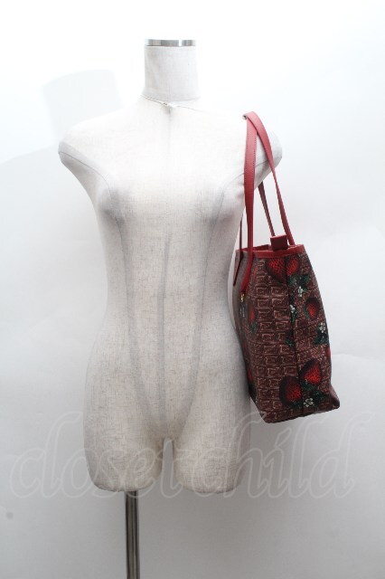Q-pot. / チョコレート×ストロベリー ジップトートバッグ ブラウン S-26-04-17-020-QP-BG-AS-ZS [2100020000039906-S-26-04-17-020-QP-BG-AS-ZS]