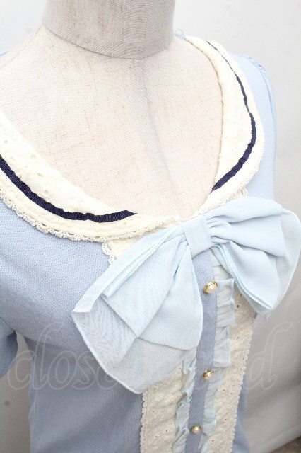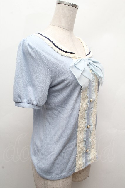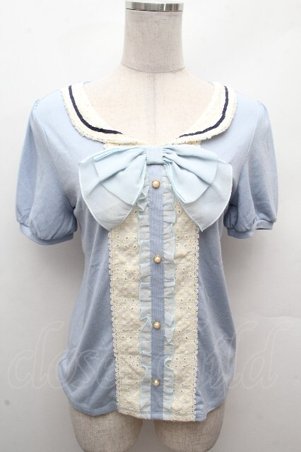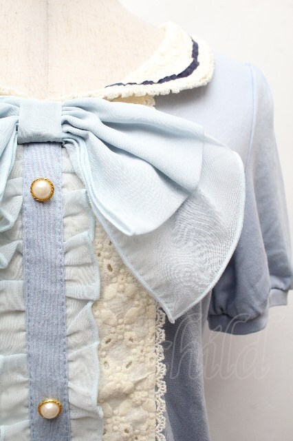 axes femme / フロントレースシフォンフリル半袖カットソー サックス S-26-04-17-046-AX-TO-HR-ZS