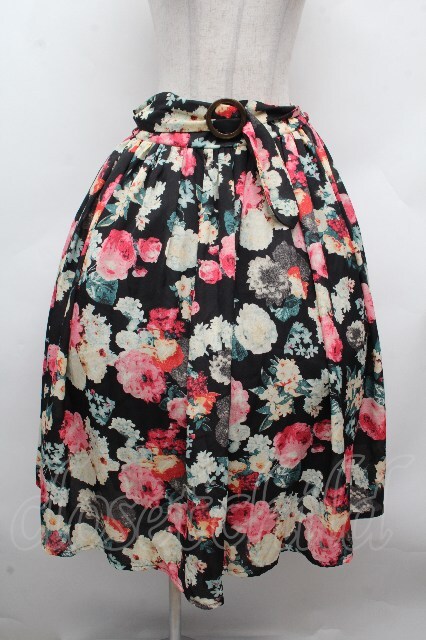 an another angelus / 水彩画プリントスカート F 黒 S-26-04-17-061-CA-SK-TE-ZS [2100020000036857-S-26-04-17-061-CA-SK-TE-ZS]