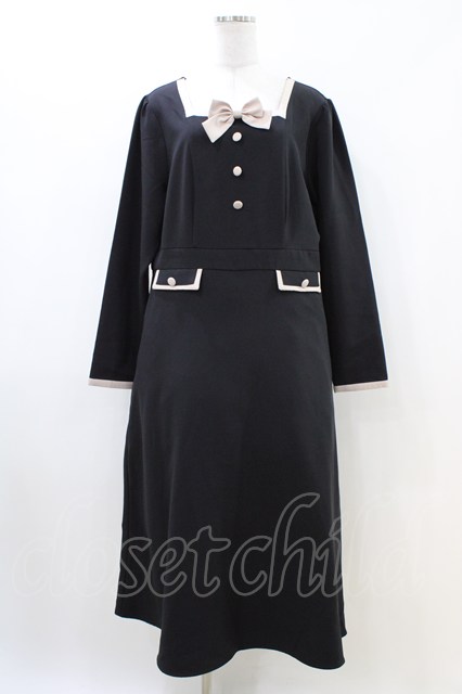 DearMyLove / スクエアネックリボンレディワンピース 4L ブラック H-26-04-22-1029-0-OP-NS-ZH