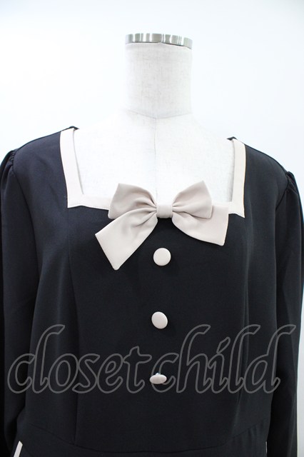 DearMyLove / スクエアネックリボンレディワンピース 4L ブラック H-26-04-22-1029-0-OP-NS-ZH [2100030000092453-H-26-04-22-1029-0-OP-NS-ZH]