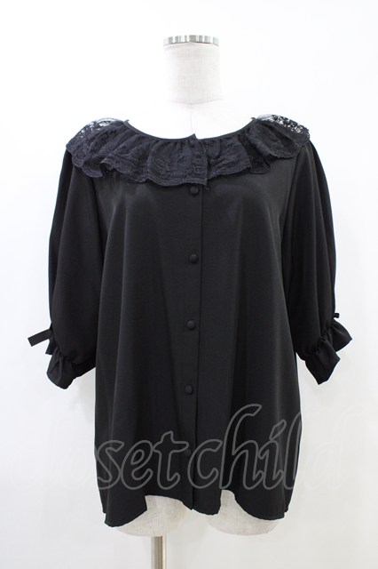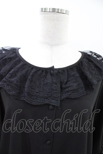 m petit by misako / MSKデシンレースエリブラウス LL ブラック H-26-04-22-1051-LO-BL-NS-ZH