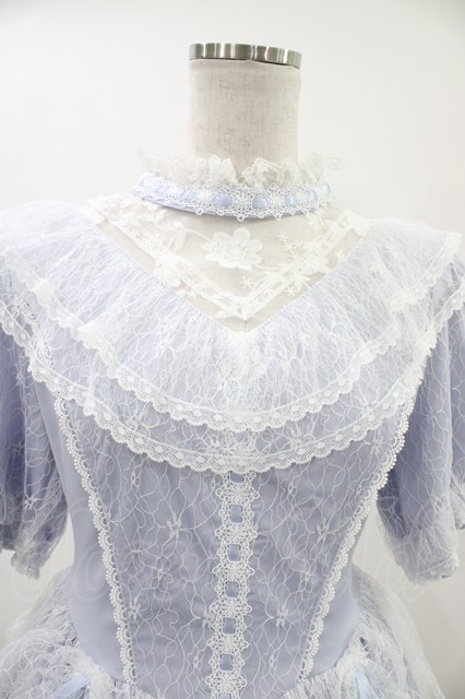 Eieyomi(海外ロリータブランド) / レースフリルワンピース L サックス H-26-04-22-1032-0-OP-NS-ZH [2100030000092465-H-26-04-22-1032-0-OP-NS-ZH]