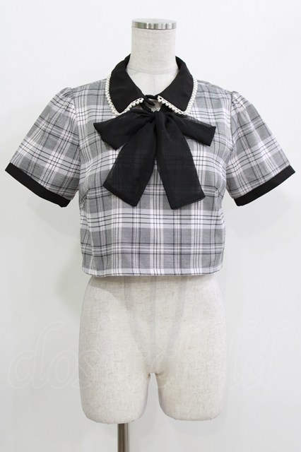 pium / チェックリボンブラウス Free グレー H-26-04-22-035-0-BL-NS-ZH