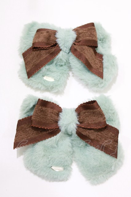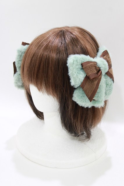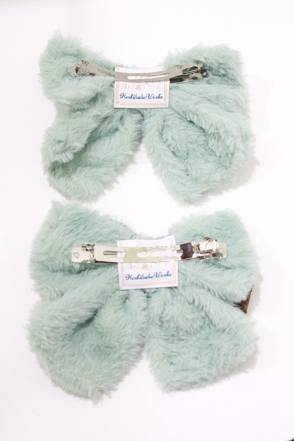 Hoshibako Works / アイシング・フリル ファーリボンバレッタ 2個セット グリーン/ブラウン H-26-04-22-067-LO-AC-NS-ZH