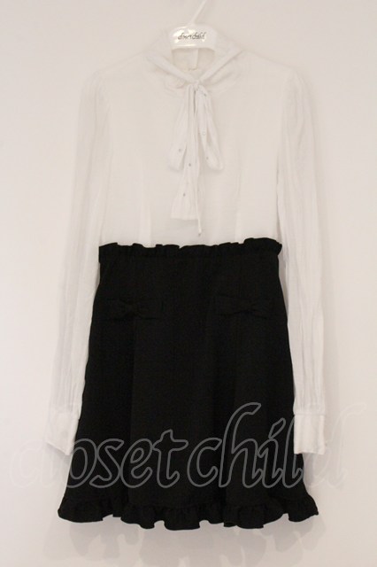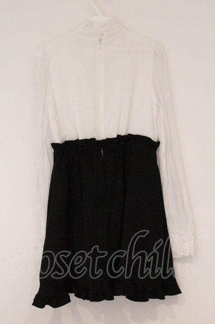 Ank Rouge / ストーンリボンタイ長袖ワンピース シロ×クロ O-26-04-18-029-CA-OP-IG-OS