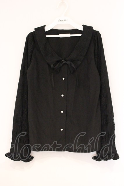 DearMyLoveRose / 選べる衿レースパフスリブラウス M 角リボンブラック O-26-04-18-016-EL-BL-IG-OS