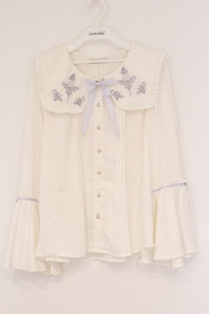 Amavel / チャイナ刺繍スクエア衿ブラウス シロ O-26-04-18-054-CA-BL-IG-OS