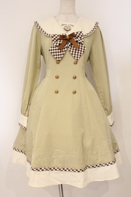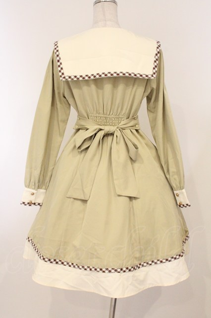 Amavel / French Ginghamセーラーワンピース ベージュ O-26-04-18-044-CA-OP-IG-OS