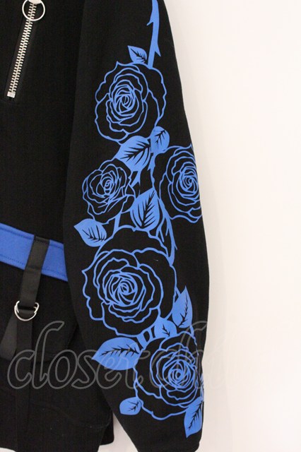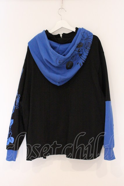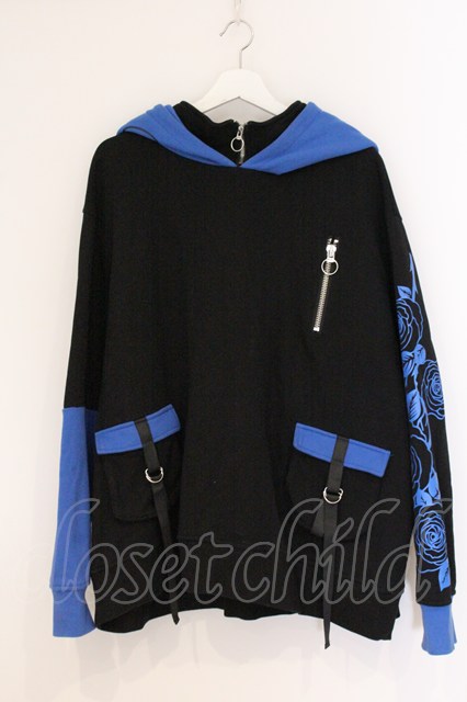 ililil / あのね。コラボ切り替えハイネックプリントパーカー ブラック×ブルー O-26-04-18-065-PU-TO-IG-OS [2100080000080207-O-26-04-18-065-PU-TO-IG-OS]