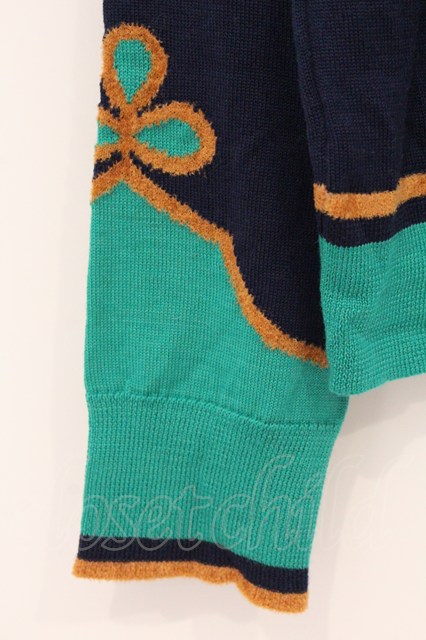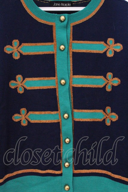 Jane Marple / ロイヤルサージェントカーディガン M ネイビー×グリーン O-26-04-18-009-JM-TO-IG-OS