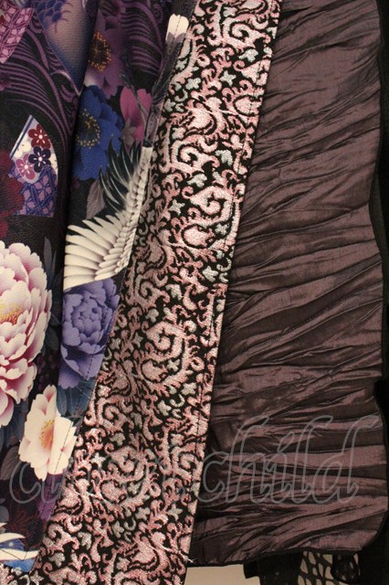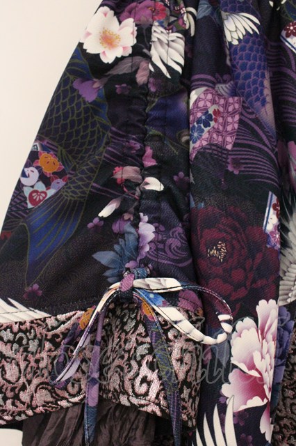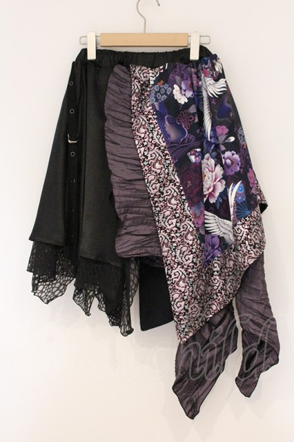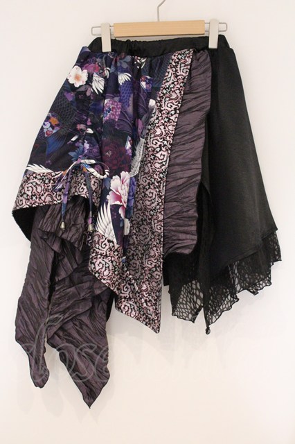 Qutie Frash / 和柄切り替えアシンメトリースカート ブラック×パープル O-26-04-18-024-QU-SK-OW-OS
